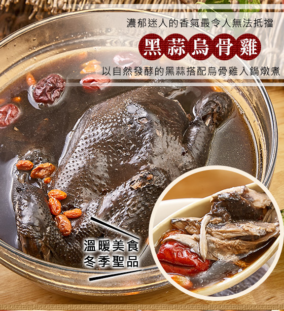 頂級烏骨雞結合黑蒜等食材